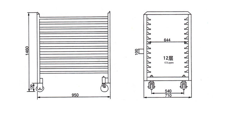 Bake vehicle specifications: 950 × 710 × 1510, 12 floors per car can be set to 24 disk