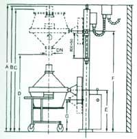 [應 用] 本機是為滿足GMP技術規范而設計的提升,卸料裝置。 應用于和FL、PGL等一步制粒機,GFG和FG沸騰干燥機等配套,從而實現無塵裝、卸料操作。[特 點] 采用液壓控制、安全可靠。 可與流化床料斗緊密配合,達到封閉操作。 GMP規范設計、制作。[結構示意圖]